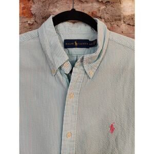 RL Ralph Lauren Gingham Shirt Mens Sz M Short Sleeve Striped Medium Q