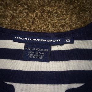 Very comfortable shirt. 100% cotton. Looks great with white or navy shorts. Worn once, excellent condition.
