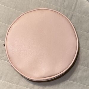 RL Cosmetics Blush Pink Faux Leather Circular Zip Make up Cosmetic Travel Bag