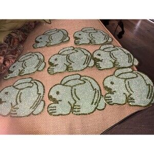 RLK By Leila’s Linen Hand Beaded Rabbit Coasters Green And Blue Made In India