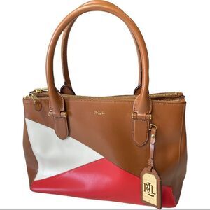 R.L.L Ralph Laure 💯% Cow Leather Tri-Color Colorblock Handbag