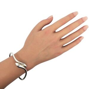 This vintage cuff bracelet is made of polished sterling silver with a sleek sculptural snake design by RLM.