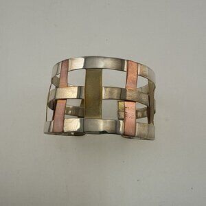 * Sterling Silver 925, Copper, and Brass Basketweave, Mixed Metal, Woven ,Lattice