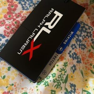 "RLX" rubber-printed above the right hem