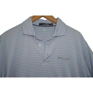 RLX Ralph Lauren Blue White Striped Golf Polo Men’s Size Large Wicking