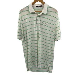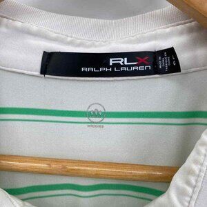 RLX Ralph Lauren Golf Polo Shirt Mens Large White Green Stripe Polyester HOLE