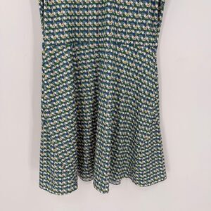 Crafted with stretch jersey featuring an abstract motif, this fit-and-flare dress is equipped with breathable mesh panels. Sleeveless fit-and-flare silhouette. Intended to hit at the thigh. Scalloped collar. Quarter-zip placket. Mesh panels at the shoulders and back yoke. Side on-seam pockets. Back waist concealed zip pocket. Godets at the hem.