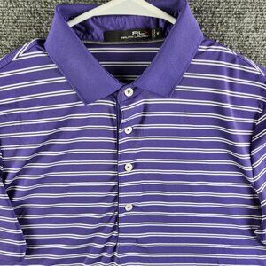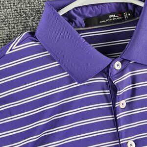 RLX Ralph Lauren Medium Purple Short Sleeve Striped Polo Golf Activewear Spandex