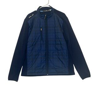 RLX Ralph Lauren Men’s GOLF Hybrid Mockneck Jacket Wool Blend Navy Full Zipper Pockets