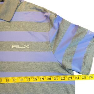 RLX Ralph Lauren Mens Polo XL Purple Gray Striped Golf Shirt BROADMOOR Logo