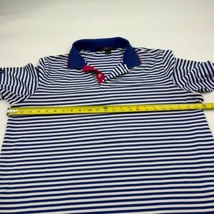 RLX Ralph Lauren Men's Polyester Navy White Striped Short Sleeve Polo