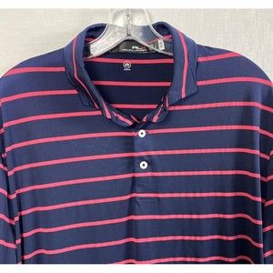 RLX Ralph Lauren Men's Size Large Short Sleeve Polo Shirt Blue Pink Striped