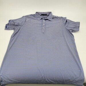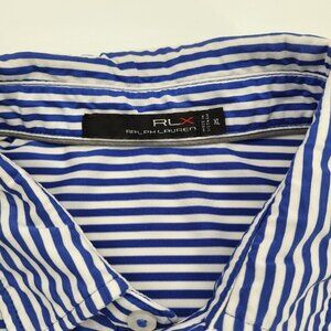 RLX Ralph Lauren XL Blue White Micro Stripe Wicking Performance S/S Polo