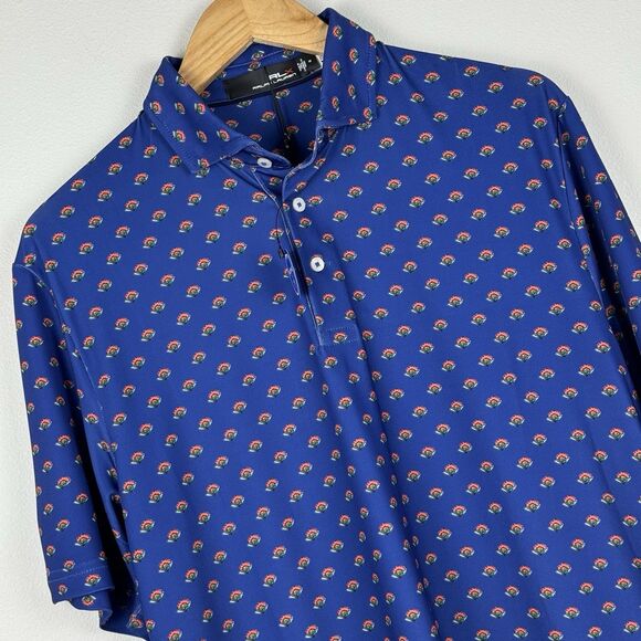 RLX Ralph Lauren Polo Men's Medium Blue Floral Golf Performance Stretch Wicking
