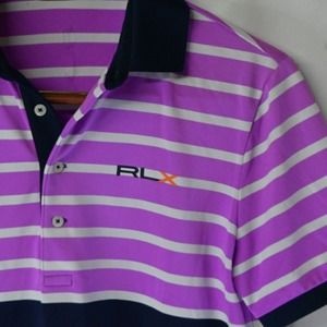 RLX Ralph Lauren Polo Mens Medium Performance Golf Red Blue Striped M
