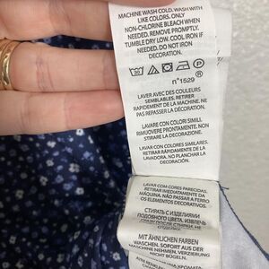 Color/Pattern: Navy blue with light blue and white ditsy floral print