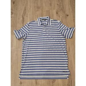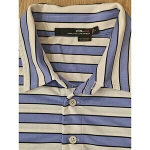 RLX Ralph Lauren Polo Shirt Mens Large Blue Striped Performance Golf Wicked