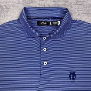 RLX Ralph Lauren Polo Shirt Men’s Size XL Blue Striped Dallas Country Club Golf
