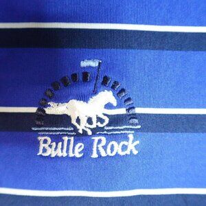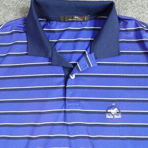 RLX Ralph Lauren Polo Shirt XL Blue Striped Bulle Rock Embroidered