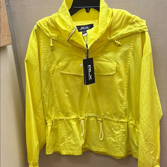This RLX Ralph Lauren ripstop nylon jacket in laser yellow combines vibrant style with functional design. The striking yellow color ensures visibility, while the lightweight, water-resistant material offers comfort and protection. Featuring a stand-up neck and hood, this jacket is perfect for versatile outdoor wear.