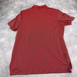 RLX Ralph Lauren Shirt for men in XL, featuring red and blue stripes, ideal for golf or casual wear. Made from high-quality polyester material for comfort and durability.