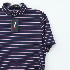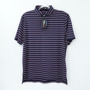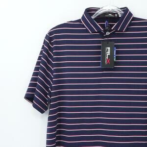 RLX Ralph Lauren Shirt Mens Medium French Navy Striped Polo Golf Wicking Stretch
