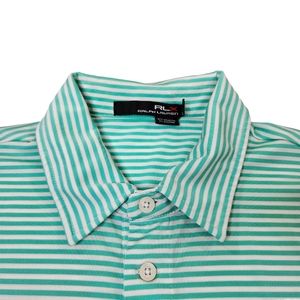 RLX Ralph Lauren Striped Polo Shirt Stretch Teal Green / White Striped Men's L