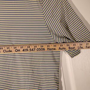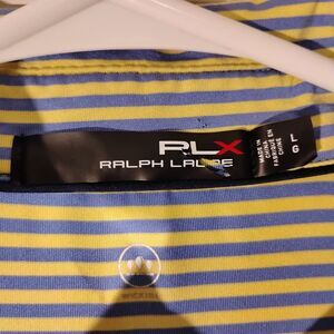 RLX Ralph Lauren polo shirt mens L Large blue yellow striped performance stretch