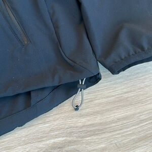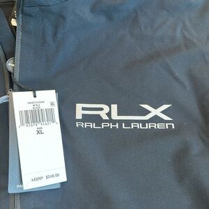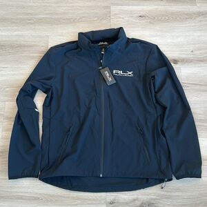 The moisture-wicking jacket is crafted with a lightweight stretch material, allowing for greater ease of movement, and it is finished with reflective logos.