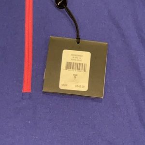 Royal blue with pink zipper. Great to exercise in or to wear while running errands!