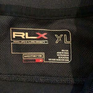 Ralph Lauren Active Golf Polo shirt in excellent condition. Some cute details give this black shirt a more feminine look; hidden collar buttons, silver top button, silver sparkly edging on collar. Stay cool with venting down sides, on sleeves and across shoulders. This shirt is definitely above par. See pic for measurement.
