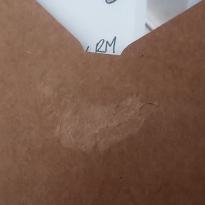Envelope bent and peeling from shipping.