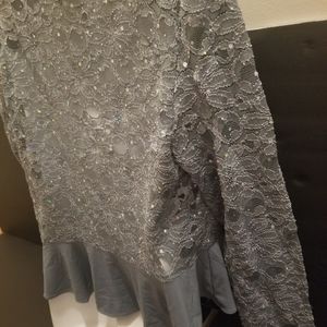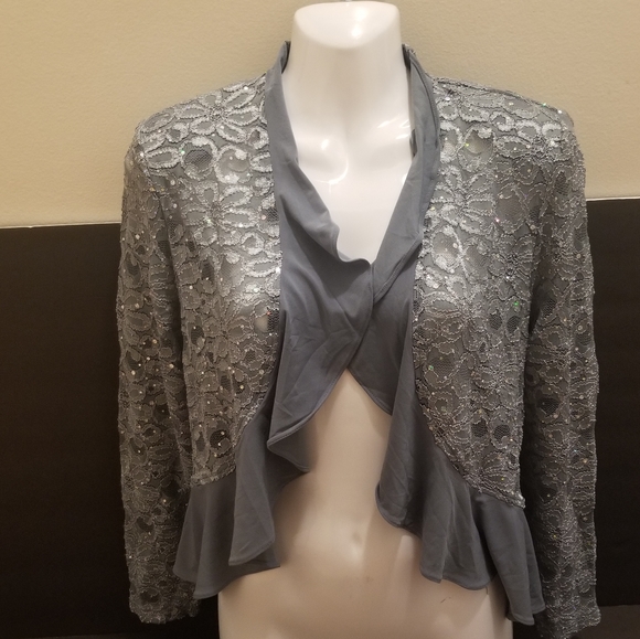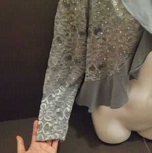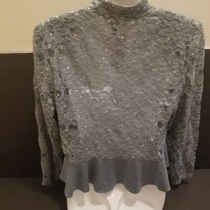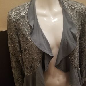 R&M RICHARD; Beautiful gray coat, lace and sequins. size: 10 (M) .. the label fell off but is new.