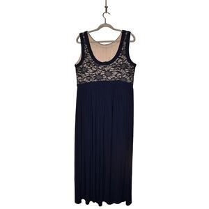 R&M RICHARDS $188 Shimmer Lace Bodice Sleeveless Maxi Dress Navy Size 14W