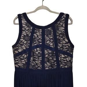 R&M RICHARDS $188 Shimmer Lace Bodice Sleeveless Maxi Dress Navy Size 14W