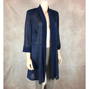 R&M RICHARDS Blue Metallic Evening Cover-Up Cardigan