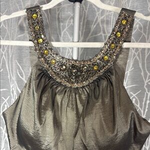 R&M RICHARDS SILVER HALTER GOWN SIZE 16 โ BEADED NECKLINE