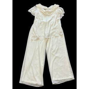 Vintage R&M RICHARDS Top w/ Attached Beaded Neck & Pants Ivory Chiffon Evening Set 18W