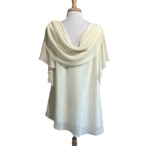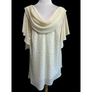 R&M RICHARDS Top w/ Attached Shawl Collar & Pants Ivory Chiffon Evening Set 18W