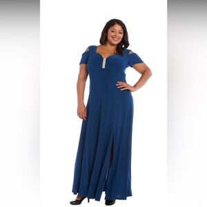 R&M Richards 1367W Long Blue Formal Evening Dress Thigh Slit & Diamante bling