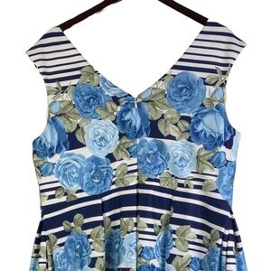 R&M Richards 16W 1X Dress Floral Striped Blue White Wedding Party Silky Stretch