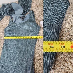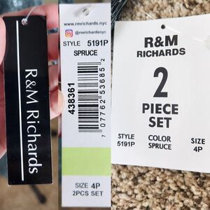 R&M Richards 2 Piece Set Jacket and Dress Metallic Blue Size 4P NWT