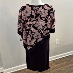 R&M Richards 6 Petite Dark Purple Eggplant Rose Pink Floral Overlay Dress