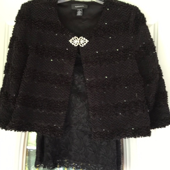 Holiday party ALERT!!! You’ll be the belle of the ball in thisBeautiful sequined jacket with matching lace tank. Pictures do not do justice. Trying to get some natural light to get the beauty of the garment. Like new condition. I only wore 1 time.