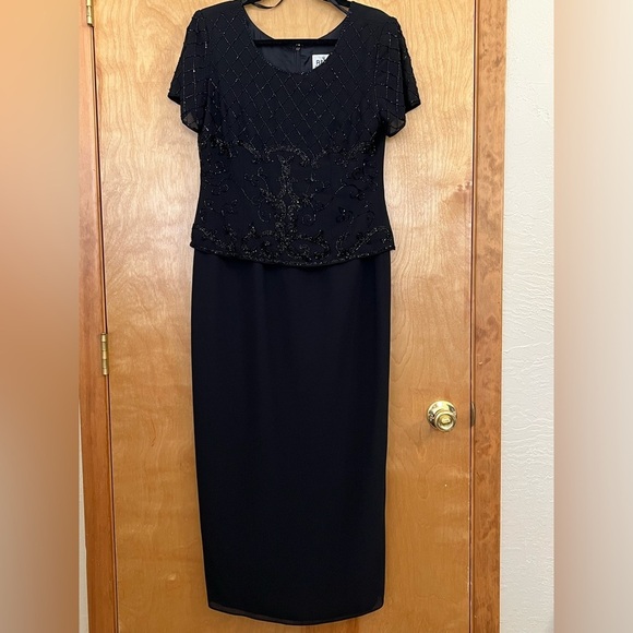 R&M Richards Beaded Black Gown Dress 8