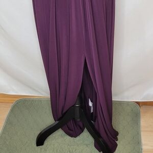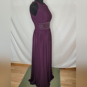Gorgeous R & M Richards beaded waist, keyhole neck, front slit A-line formal gown in eggplant. The perfect look for all special occasions.