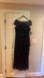 Sophisticated formal black beaded dress with elegant draping. Perfect for weddings.