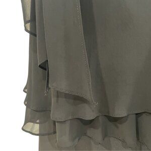 RM Richards, black chiffon top, plus size, 14W formal, flutter sleeve, layered ruffle, beaded bust, metallic pattern, elegant black, special occasion, wedding guest, cocktail, classy, USA made, timeless, flattering formal wear