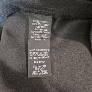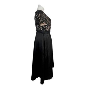 R&M Richards Stretch Black Satin High-Low A-Line Maxi Dress With Lace and Sequins.