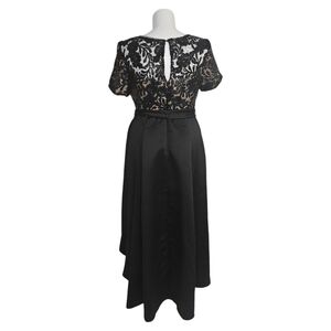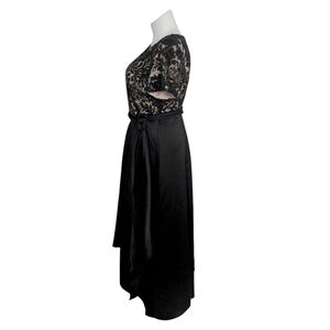 R&M Richards Black Satin & Sequined Lace A-Line High-Low Maxi Dress
